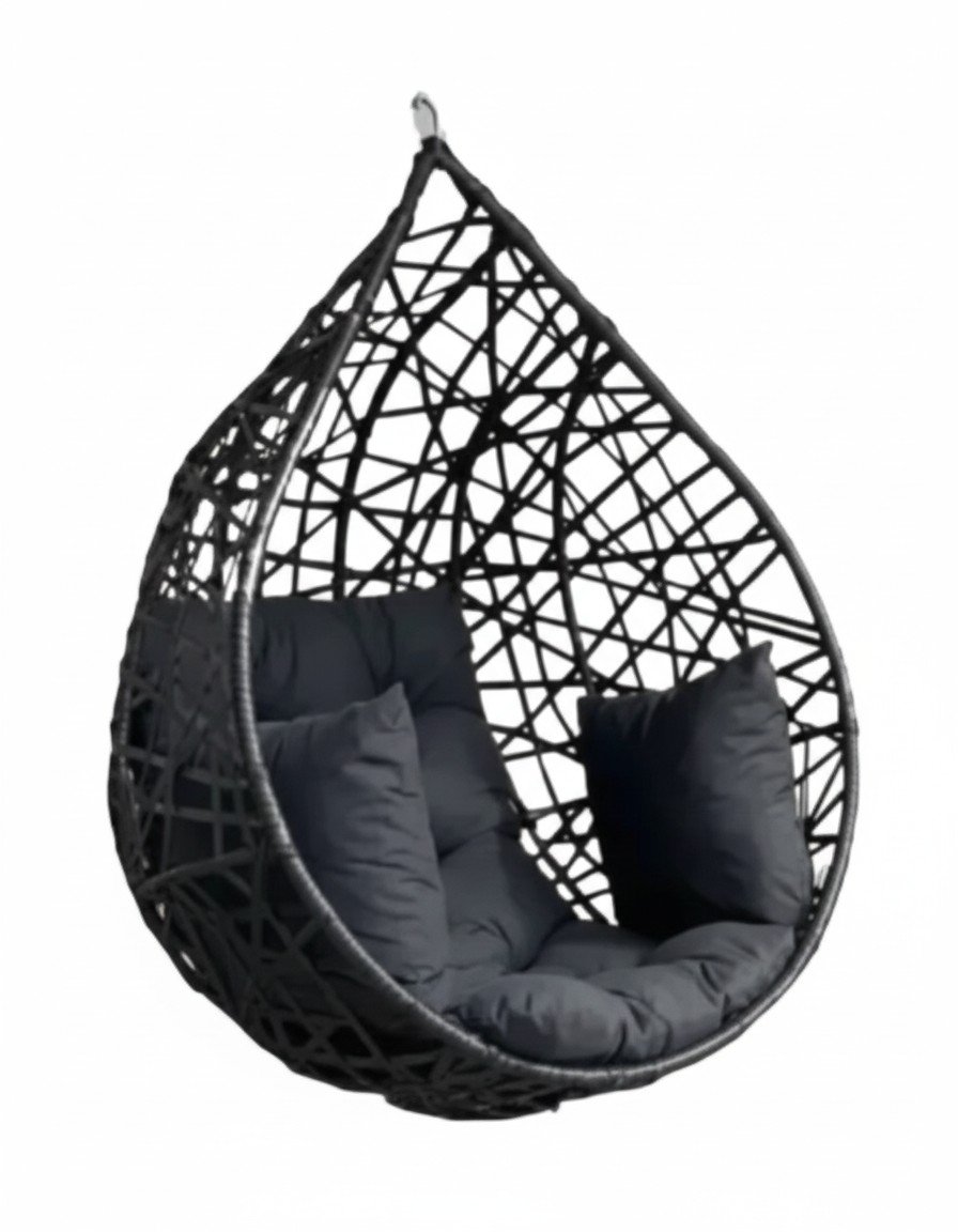 Estrutura cor preto com futon e almofadas em tecido preto e corda náutica achatada 12mm cor preta