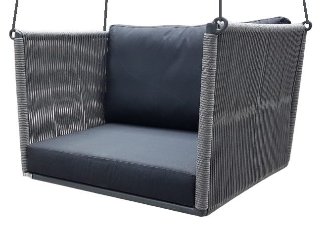 Estrutura cor grafite com estofamento em tecido preto e corda náutica redonda 6mm cor prata