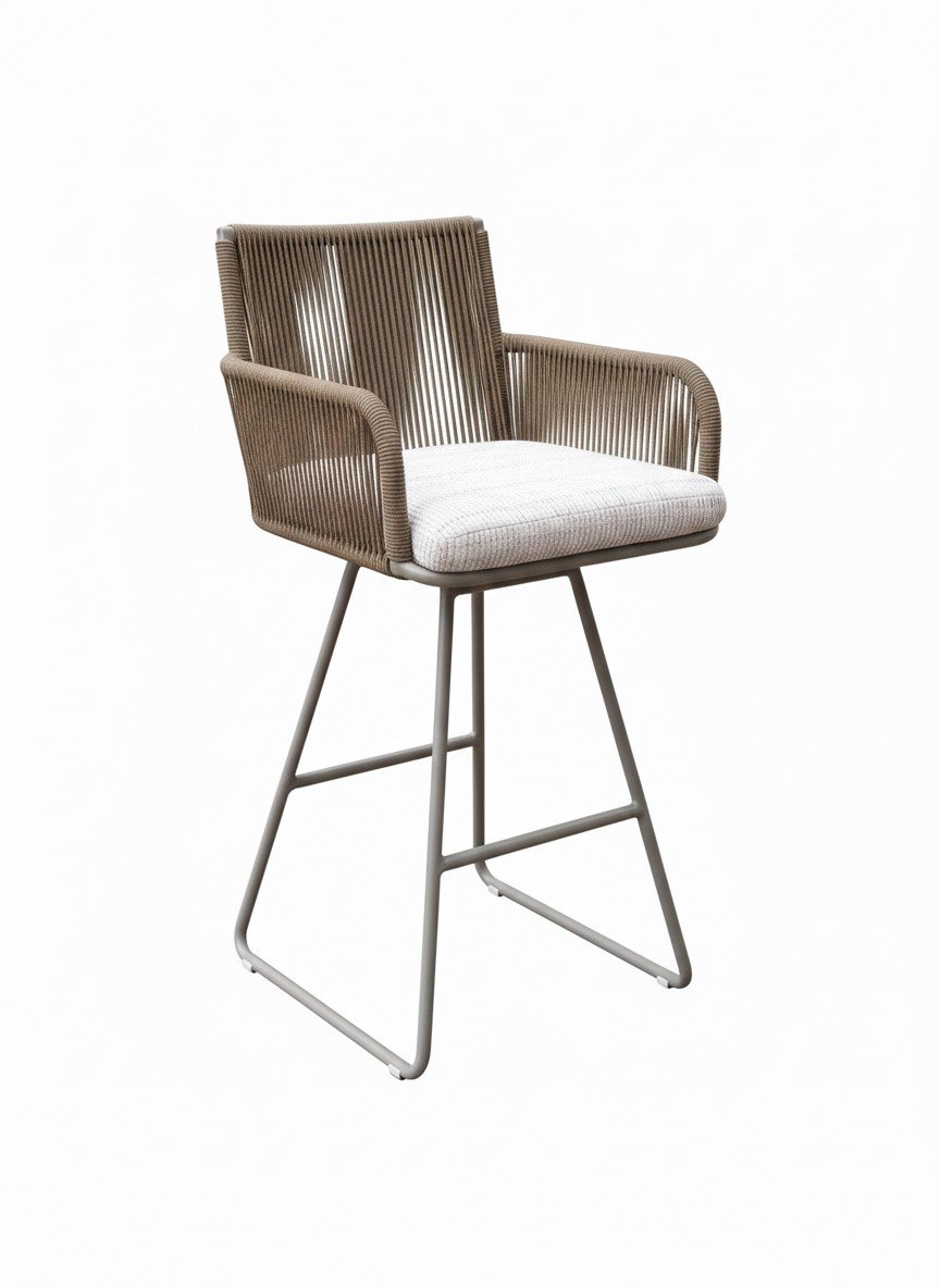 Estrutura cor champagne com estofamento em tecido bege e corda náutica redonda 4mm cor camurça