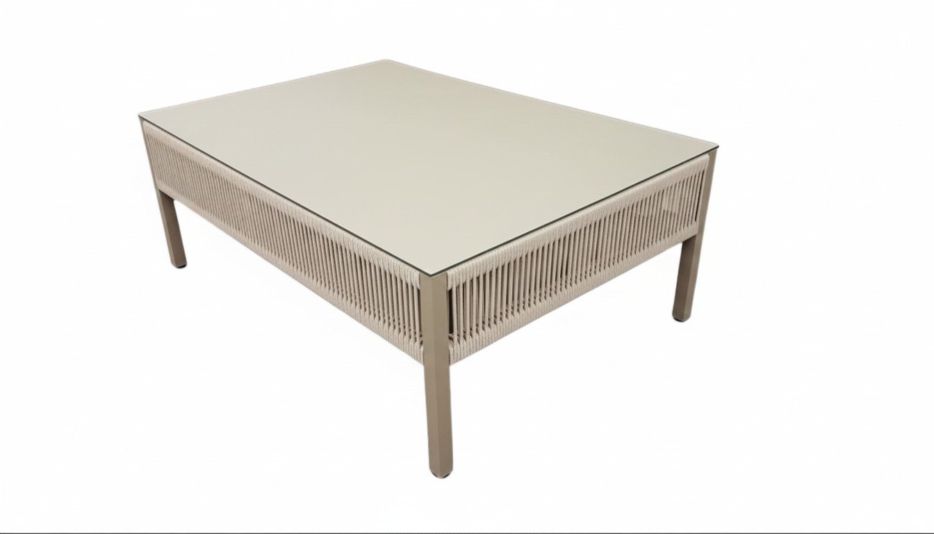 Estrutura cor champagne e acabamento em corda náutica redonda 6mm cor areia